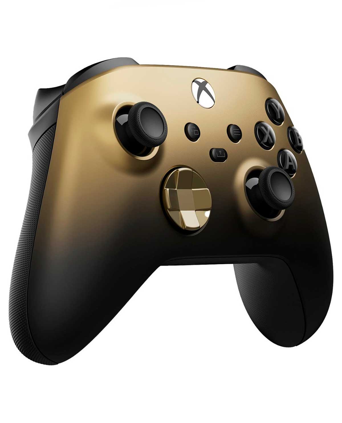 Brilla desde las sombras con el Control inalámbrico Xbox: Edición especial Gold Shadow, con un brillante acabado metálico de oro sobre negro.