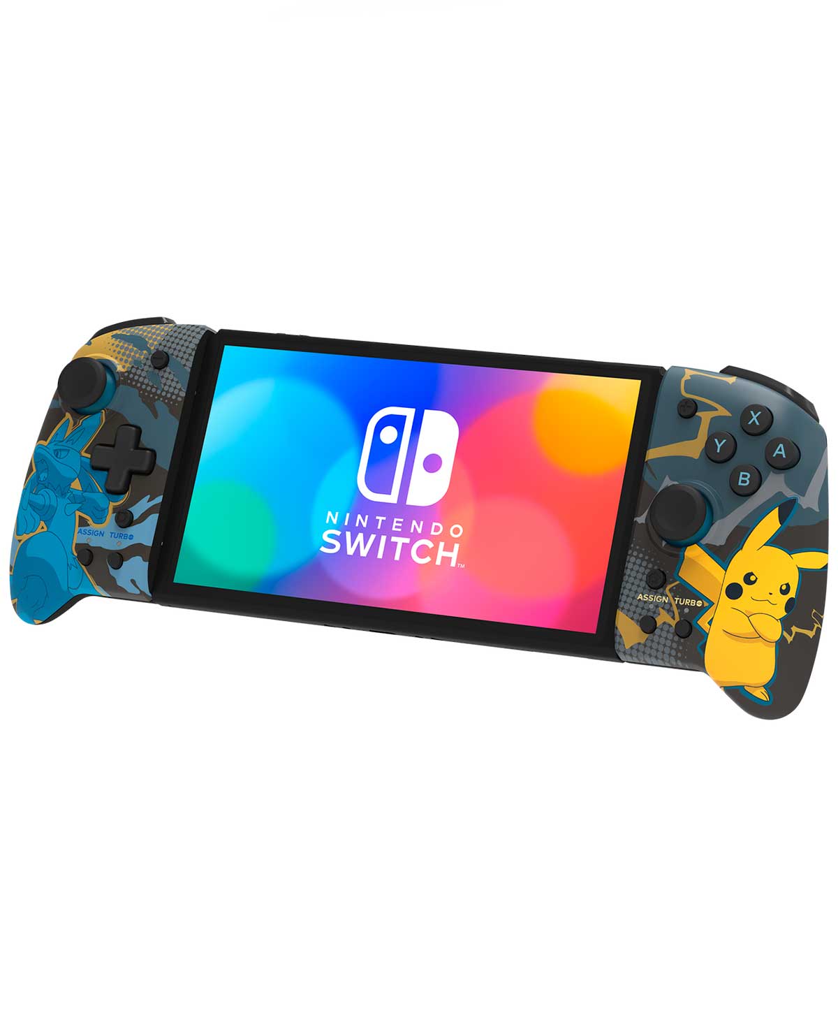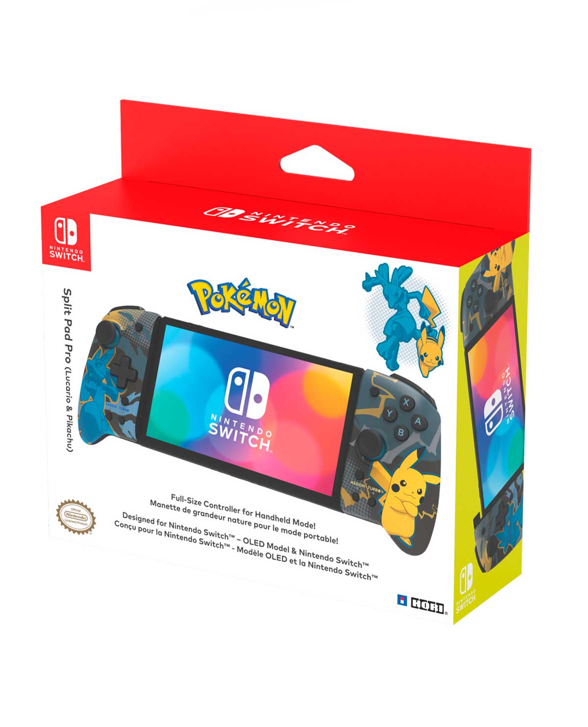 ¡Disfruta de la experiencia del control de tamaño completo en modo portátil con HORI Split Pad Pro (Lucario y Pikachu)!