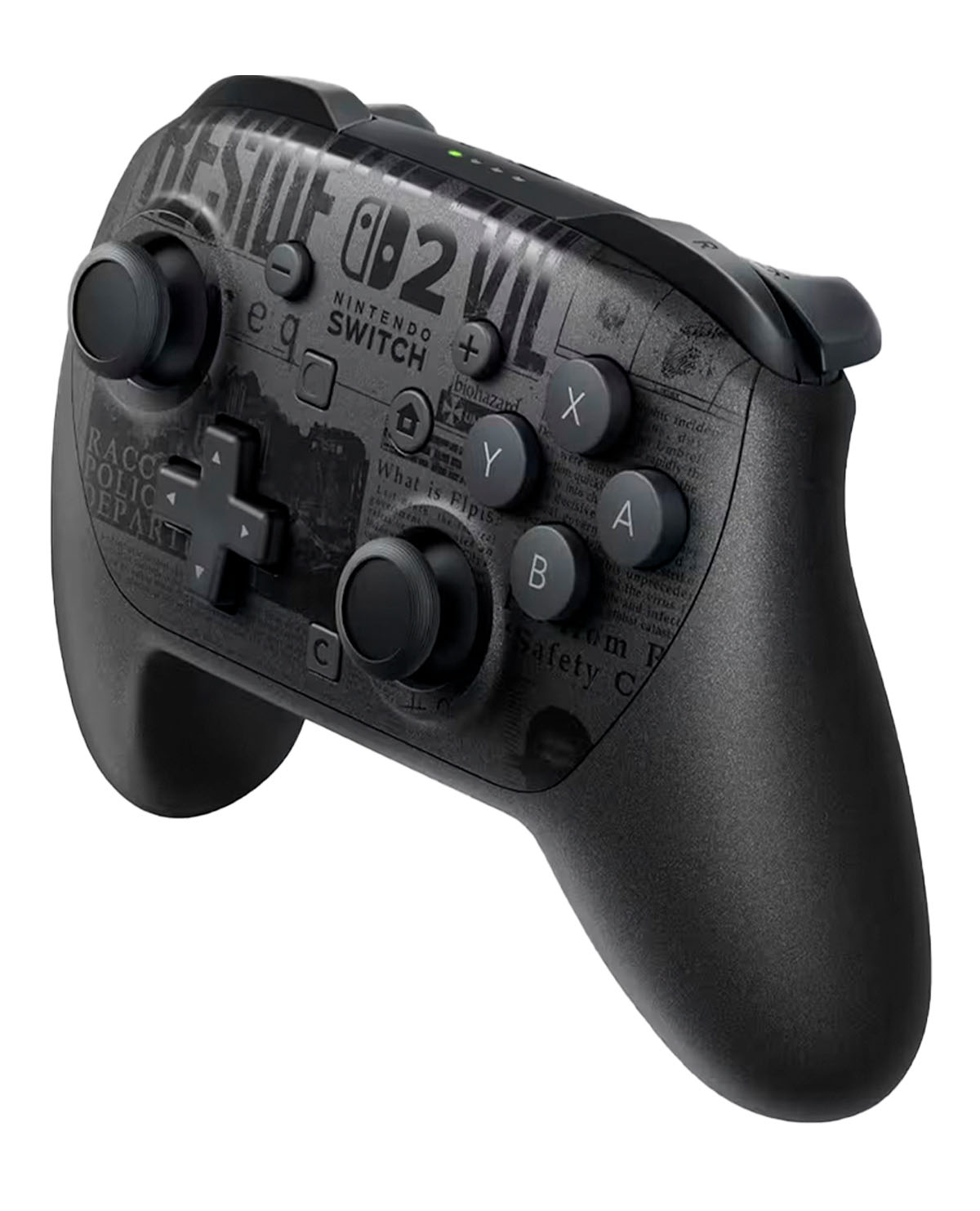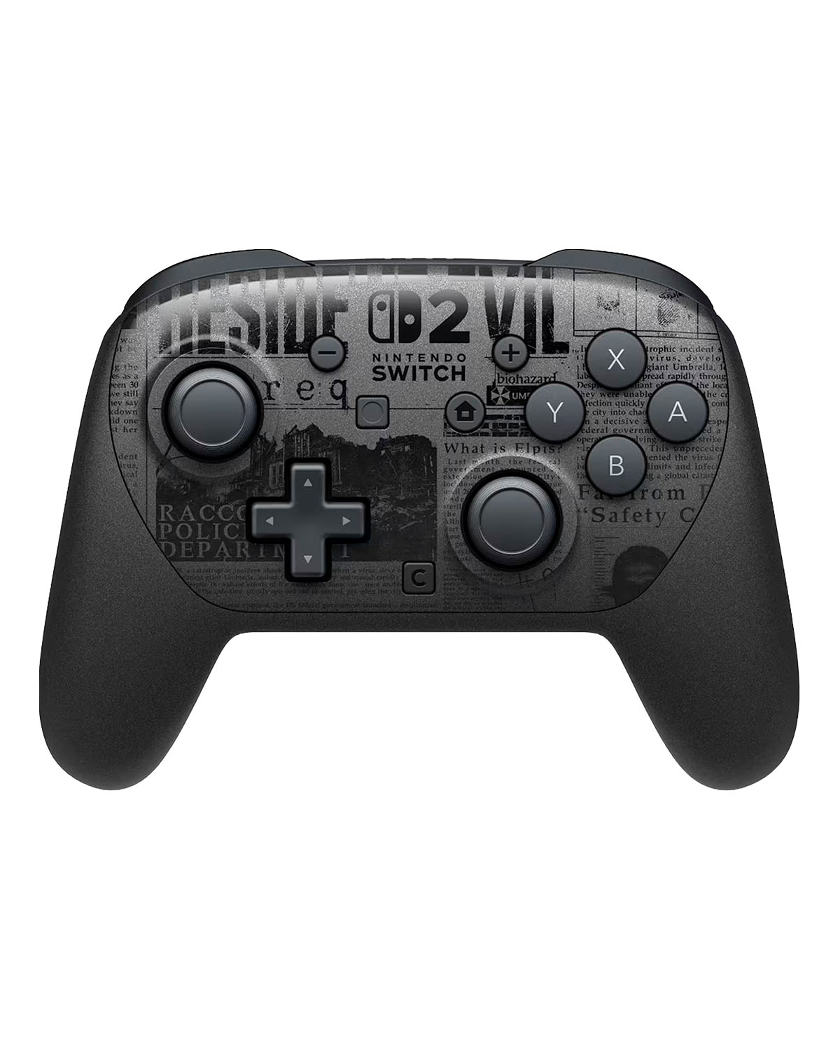 Sumérgete en la atmósfera oscura y envolvente de Resident Evil Requiem con este mando Pro de Nintendo Switch 2 en edición limitada. Su diseño exclusivo en color negro, decorado con detalles inspirados en los periódicos del juego, captura a la perfección la esencia inquietante de la saga y convierte cada partida en una experiencia inmersiva.