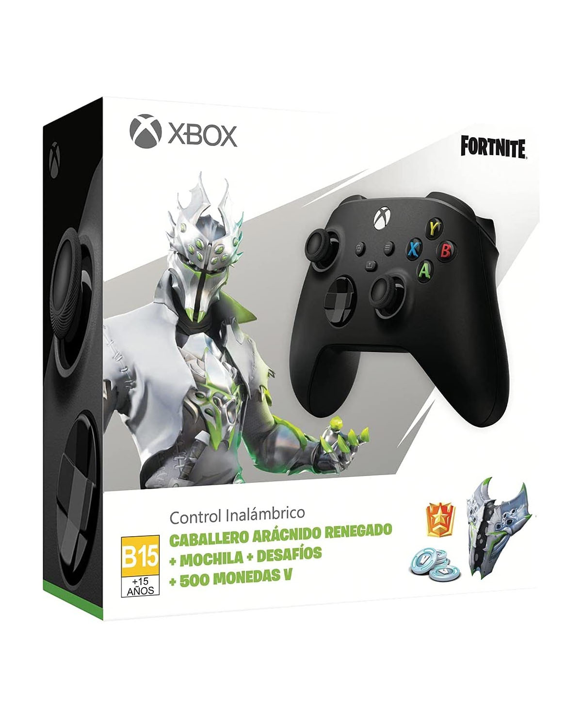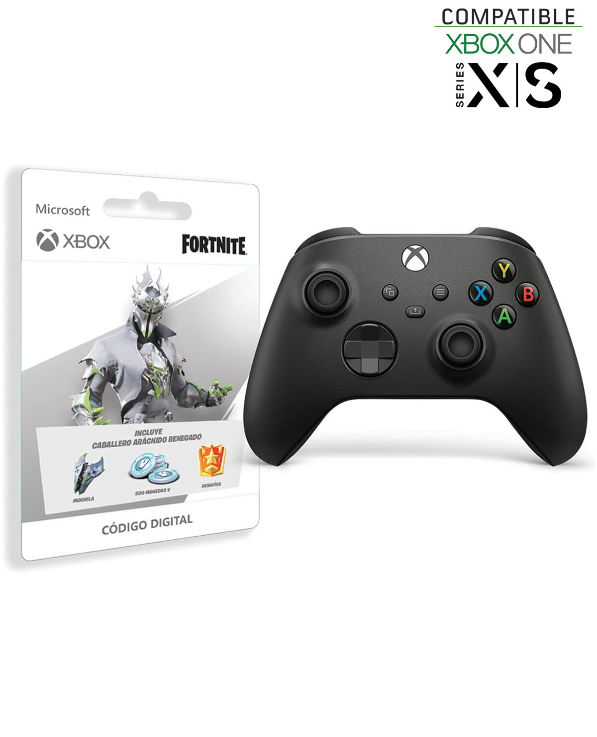 – Incluye outfit del Caballero Arácnido Renegado, Accesorio Mochilero, Desafíos y 500 monedas V.