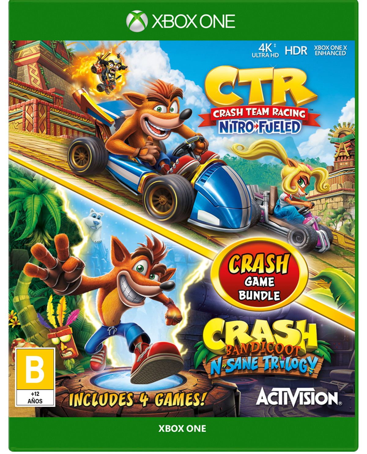 Vive la experiencia de cuatro juegos completos de acción marsupial épica con este lote de Crash Bandicoot que incluye Crash Bandicoot N. Sane Trilogy y Crash Team Racing Nitro-Fueled.