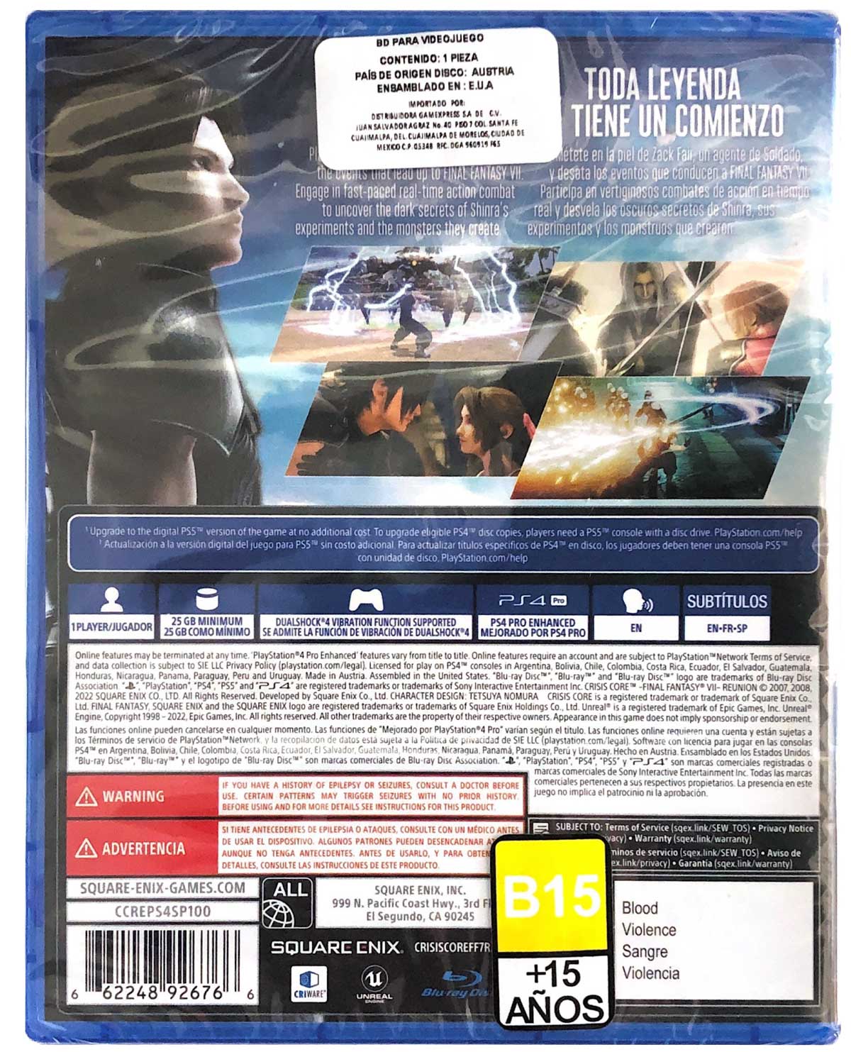 CRISIS CORE – FINAL FANTASY VII – REUNION es una remasterización del CRISIS CORE – FINAL FANTASY VII – original, que presenta una revisión completa de gráficos HD, una banda sonora remasterizada, una interfaz de usuario reimaginada y un sistema de combate actualizado. Juega como el agente SOLDADO Zack Fair y activa los eventos que conducen a FINAL FANTASY VII. Participa en combates de acción vertiginosos en tiempo real para descubrir los oscuros secretos de los experimentos de Shinra y los monstruos que crean.