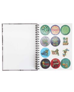 Incluye una hoja de stickers con diseños de tus caricaturas favoritas de Nick 90’s.