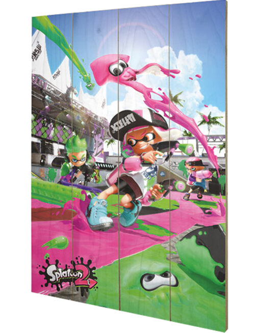 Entinta tu mundo de colores con este cuadro de Splatoon, su base es de madera y mide aproximadamente 34 x 49 cm.