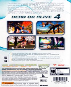 El equipo Ninja de Tomonobu Itagaki nos brinda de nueva cuenta otra entrega de su famosa serie de títulos de pelea, la serie Dead Or Alive, así es que prepárate a acabar con los botones de tu control mientras te encargas de demostrar a todos que eres el mejor peleador. La aclamada serie DEad Or Alive que es reconocida tanto por los medios como por su legión de Fans da por fin el paso a la siguiente generación de consolas, brindándonos no solo un espectacular apartado grafico sino un sinfín de posibilidades completamente nuevas que solo pueden ser explotadas con el poder de tu Xbox 360.