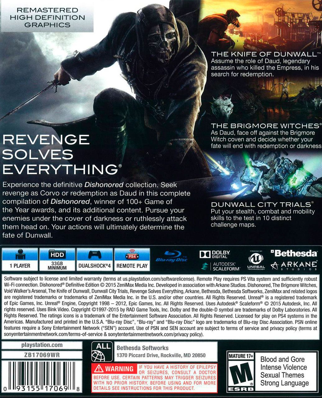 Se trata de una reedición del título original para las nuevas consolas. Esta edición incluirá el juego original lanzado en 2012 por Arkane Studios, así como todo su contenido adicional (Dunwall City Trials, El puñal de Dunwall, Las brujas de Brigmore y Void Walker’s Arsenal), además de gráficos mejorados.