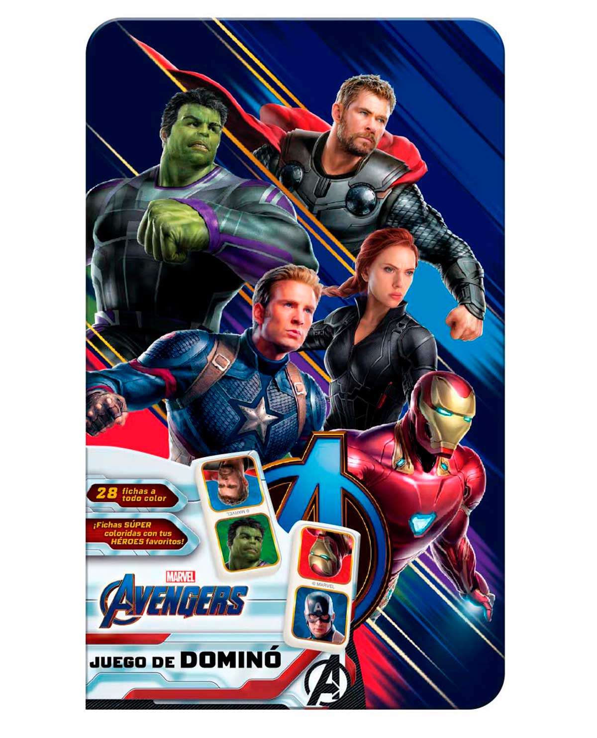 Contiene 28 fichas de Hulk, Thor y más héroes.