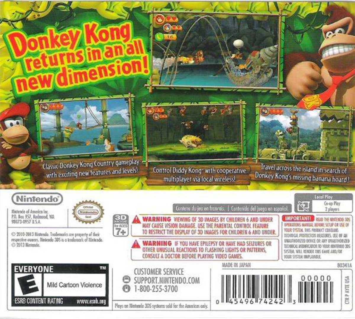 La aventura que deslumbró al mundo hace dieciséis años retorna con todo su inigualable estilo y salvajes entornos ahora en 3D. En esta ocasión, Donkey Kong y su amigo Diddy Kong deberán recuperar su preciada provisión de bananas, las cuales fueron robadas por los animales del bosque, quienes se encuentran bajo un hechizo de los malvados tikis.