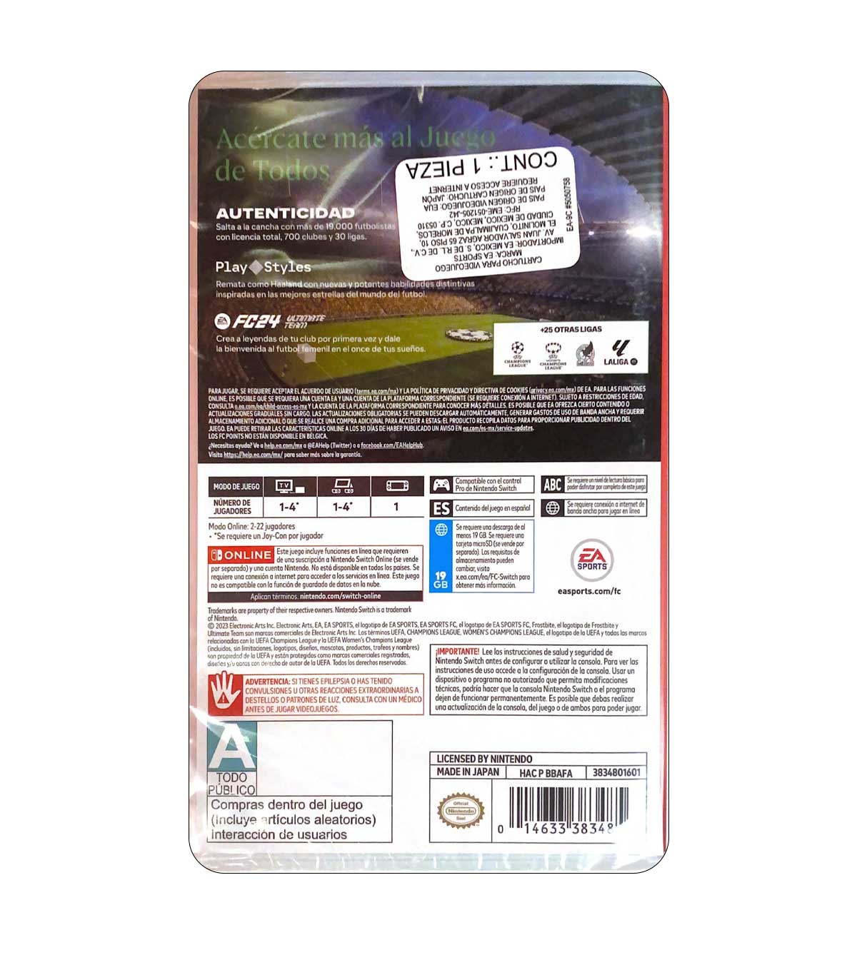 EA SPORTS FC 24 representa una nueva era para el Juego de Todos: más de 19,000 futbolistas con licencia total, más de 700 equipos y más de 30 ligas en la experiencia futbolística más auténtica jamás creada.