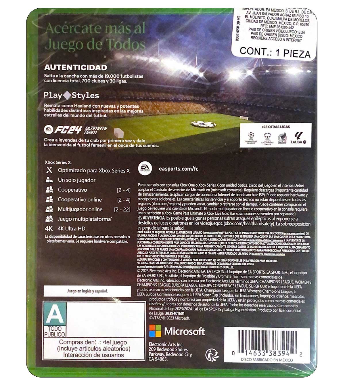 EA SPORTS FC 24 representa una nueva era para el Juego de Todos: más de 19,000 futbolistas con licencia total, más de 700 equipos y más de 30 ligas en la experiencia futbolística más auténtica jamás creada.