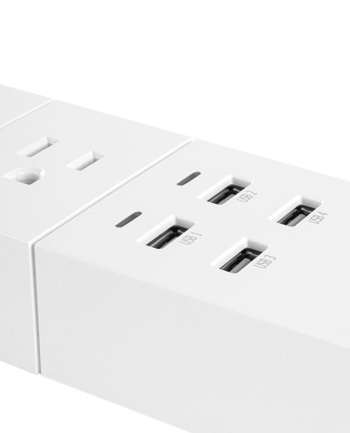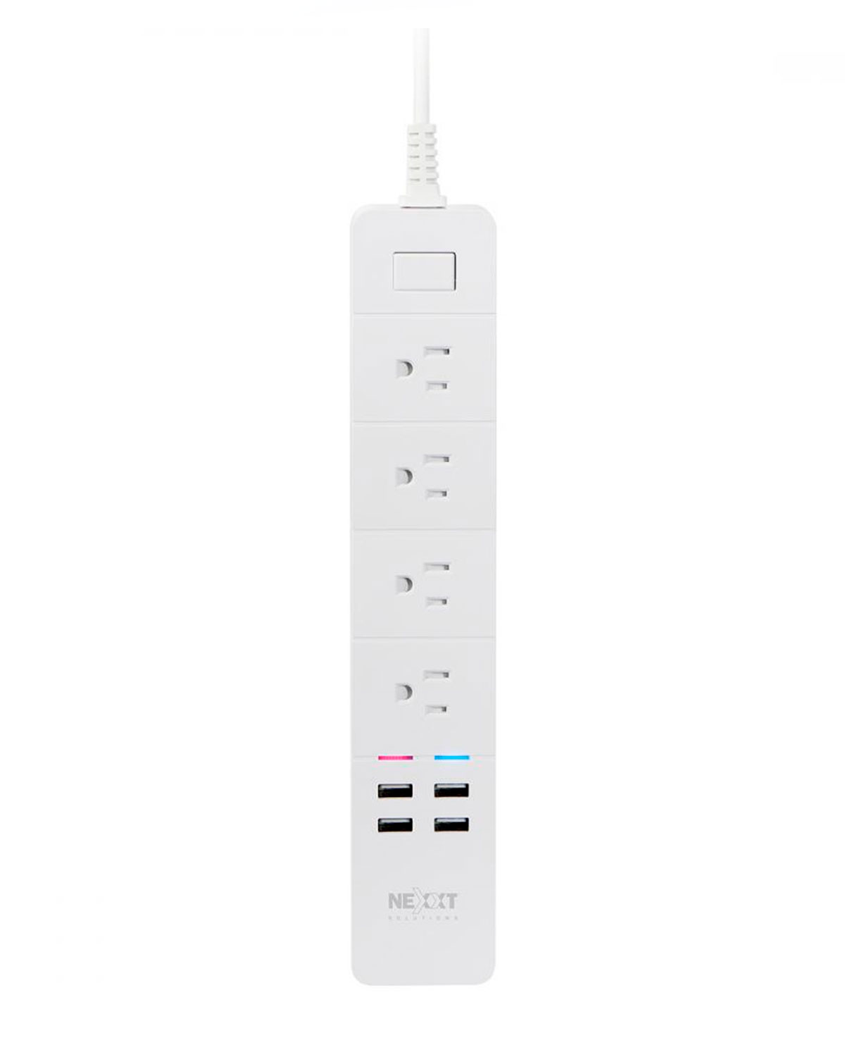 4 tomacorrientes y 4 puertos USB inteligentes para carga.