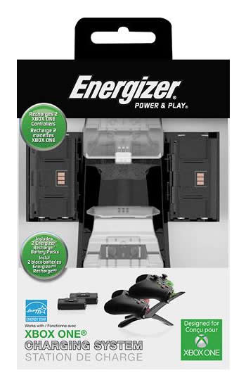 Carga dos controles de xbox one simultaneamente en tan sólo 2.5 horas con el Cargador Energizer para XBOX ONE. Totalmente compatible con la batería recargable de xbox one (batería no incluida).