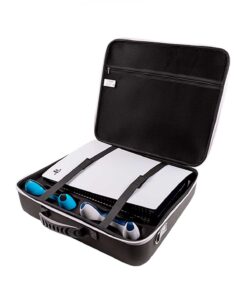 Es una solución de almacenamiento y transporte elegante y segura para tu consola PlayStation, ideal para los jugadores que quieren llevar su experiencia de juego a cualquier lugar sin preocuparse por los daños o inconvenientes en el camino.