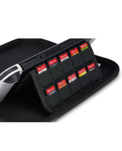 – Soporte para consola, perfecto para superficies planas, además puede almacenar hasta diez cartuchos de juego.