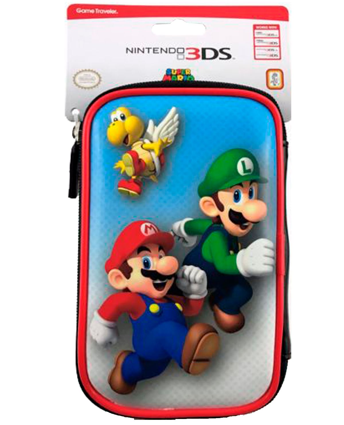 El protector viene con un diseño único inspirada en los hermanos Bros, por dentro vienen casillas para cargar todos tus juegos favoritos, también viene un comportamiento de medida perfecta para tu consola.