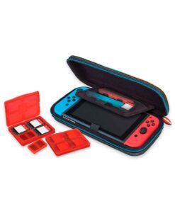 – Divisor acolchado para proteger la pantalla y bolsillo de malla con cierre para las correas del Joy-Con y juegos.