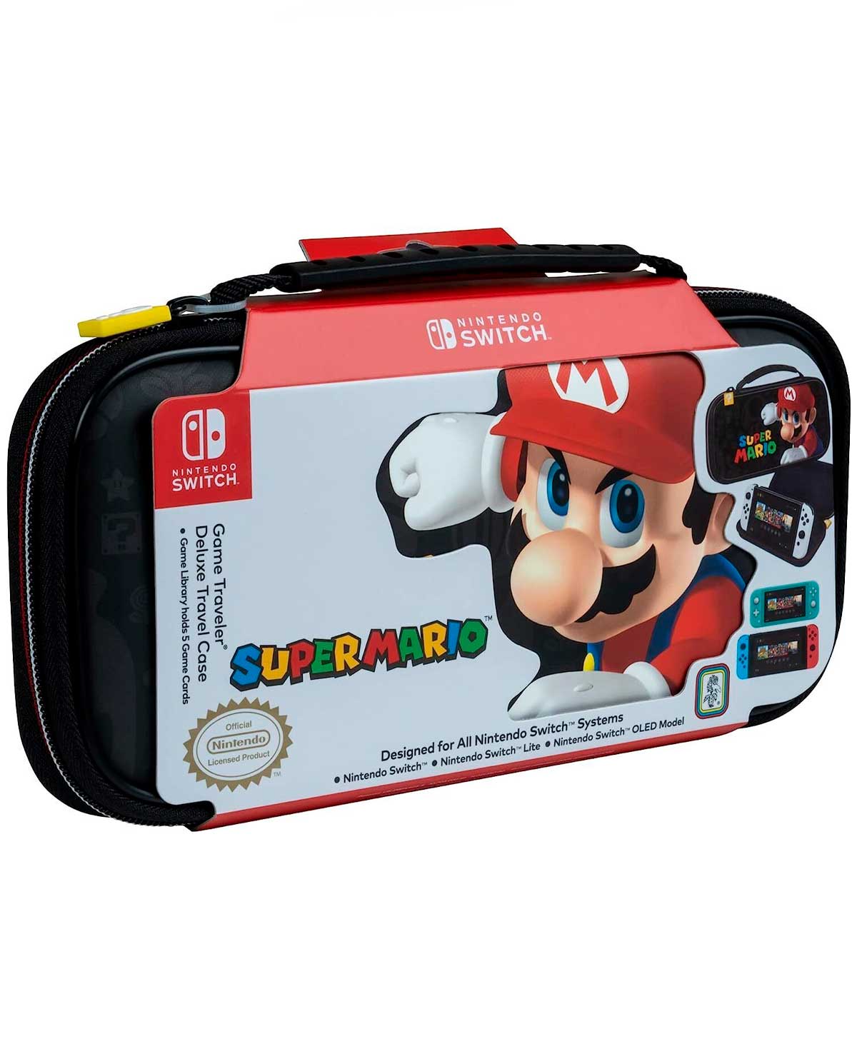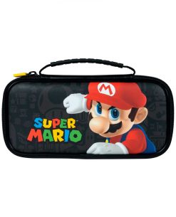 ¡El estuche de lujo para viaje de Mario Bros para Nintendo Switch es un estuche rígido que protegerá su sistema Nintendo Switch o Nintendo Switch Lite mientras viaja! Cuenta con un soporte de visualización ajustable que se puede ajustar fácilmente al ángulo de visualización que desee, una parte inferior empotrada que sujeta firmemente su Nintendo Switch y un práctico asa de transporte.