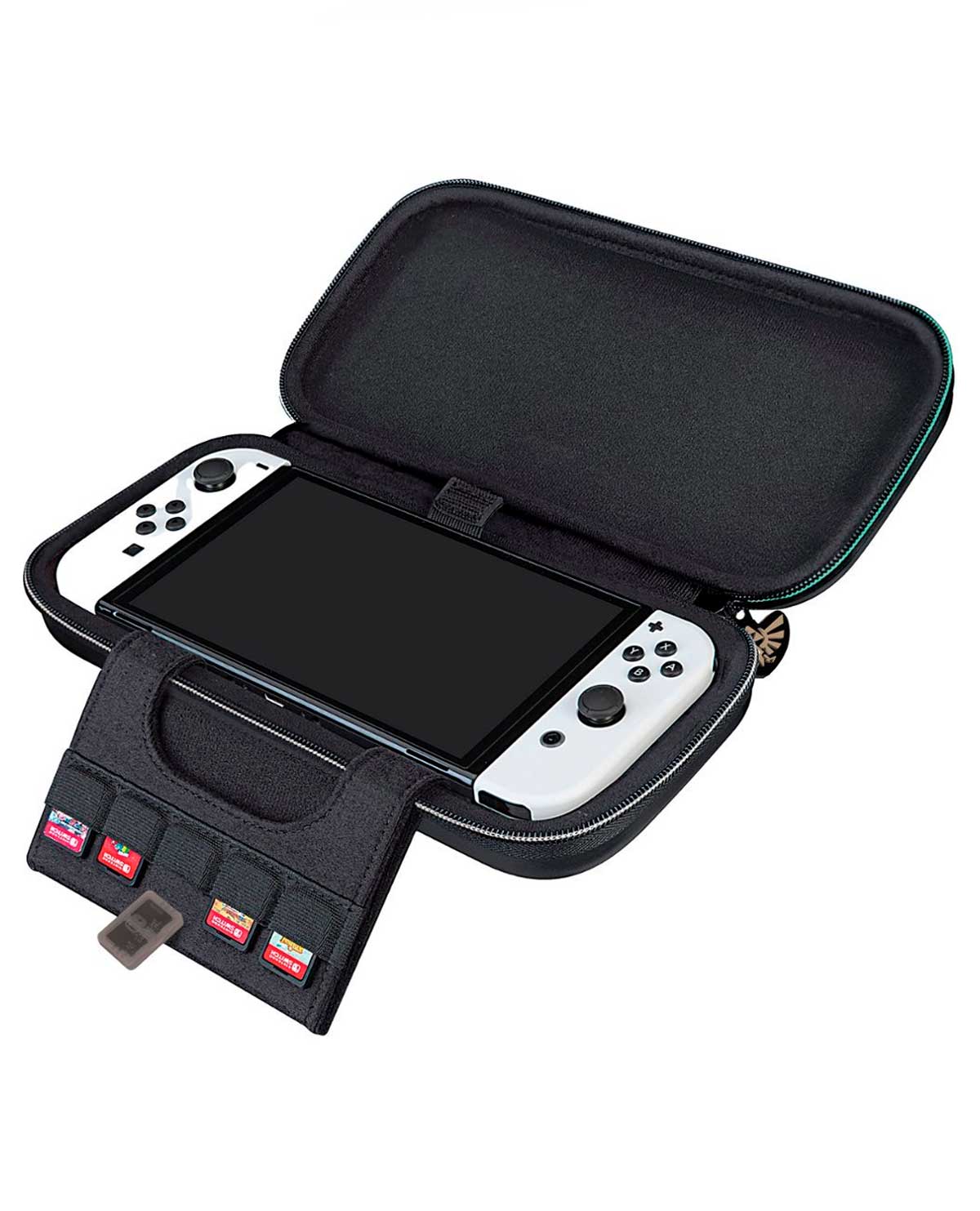 Estuche de viaje Deluxe Game Traveler con licencia de Nintendo Switch para Nintendo Switch, Nintendo Switch Lite o modelo OLED de Nintendo Switch. Cuenta con un soporte de visualización incorporado para ajustar fácilmente al ángulo de visualización deseado.