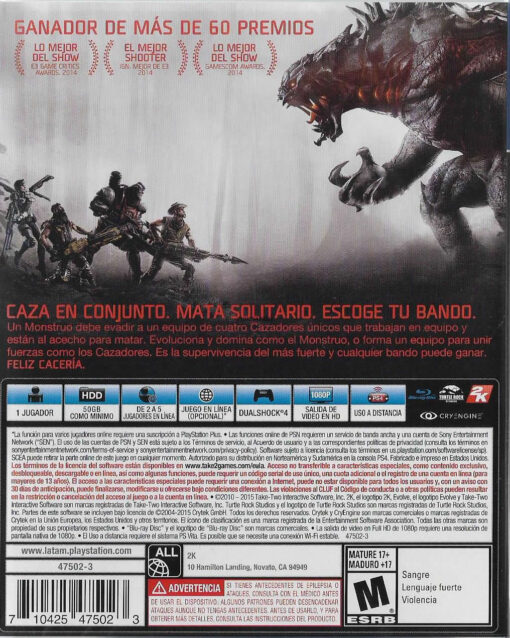 Los creadores de Left 4 Dead, Turtle Rock Studios, te ofrecen Evolve, la nueva generación de shooters multijugador donde los cazadores se enfrentan a un monstruo controlado por otro jugador.