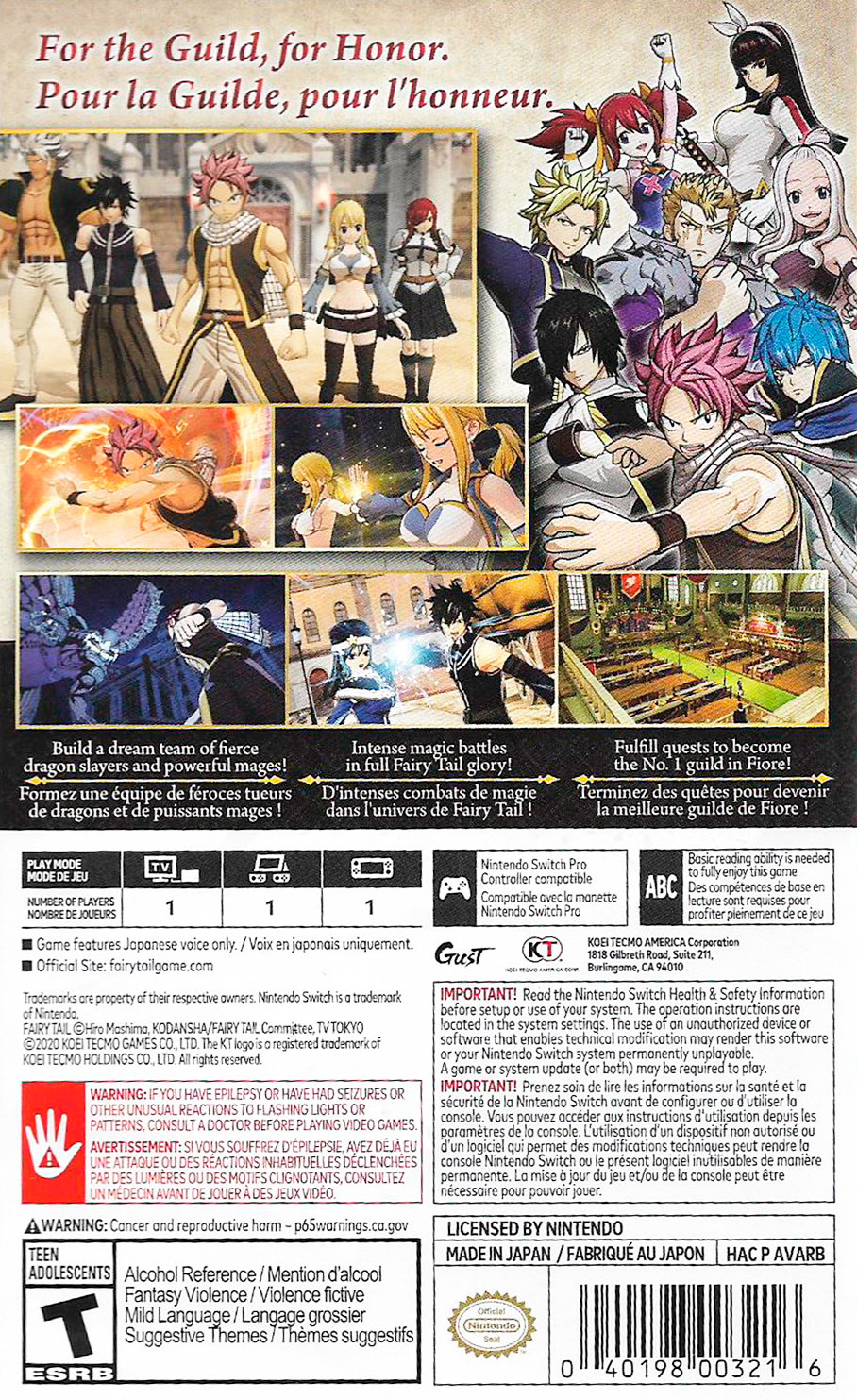 En FAIRY TAIL, los jugadores pueden formar un equipo de ensueño de cinco personajes a partir de una lista de más de 15 personajes jugables mientras se aventuran por el Reino de Fiore en su búsqueda para elevar a FAIRY TAIL al gremio más importante de la región.