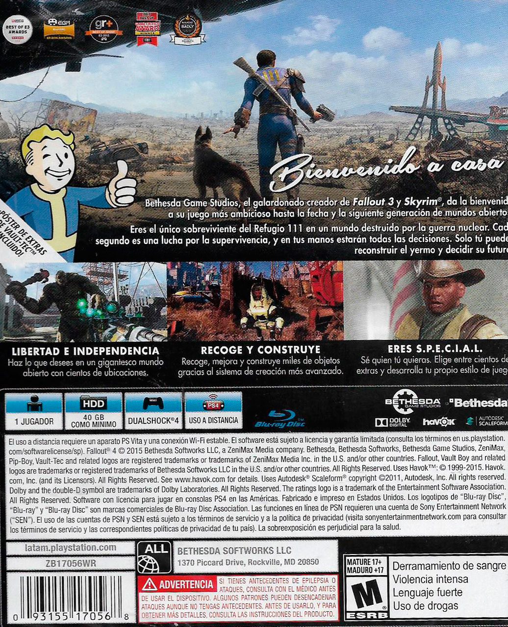 “El proyecto más ambicioso de Bethesda Studios se presenta para la nueva generación con un mundo abierto donde tu puedes explorar a volundad miles de lugares, personajes y retos para completos, puedes unirte con otros o explorar por ti mismo, hablando de individualidad, Fall Out 4 adereza la experiencia con el sistema de personajes S.P.E.C.I.A.L. Donde puedes crear personajes con cualidades de batalla, negociación y otras más para desarrollar la historia y el juego a tu manera.