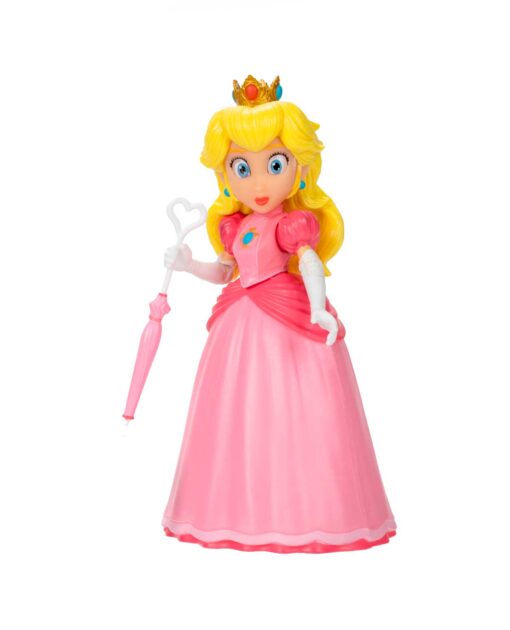 Colecciona tus personajes favoritos en la serie de figuras de 5" pulgadas (12 cm) de The Super Mario Bros. Movie. La figura de Peach está inspirada en la película y viene con detalles premium que incluyen ojos acrílicos realistas y 16 puntos de articulación.