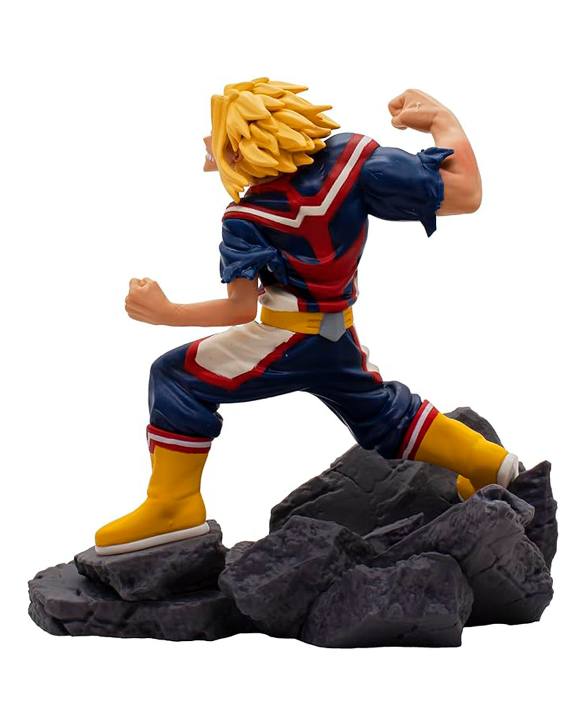 - Escena de acción: Capturado en medio de un ataque, All Might luce imponente y lleno de energía, como si estuviera listo para salvar al mundo una vez más.