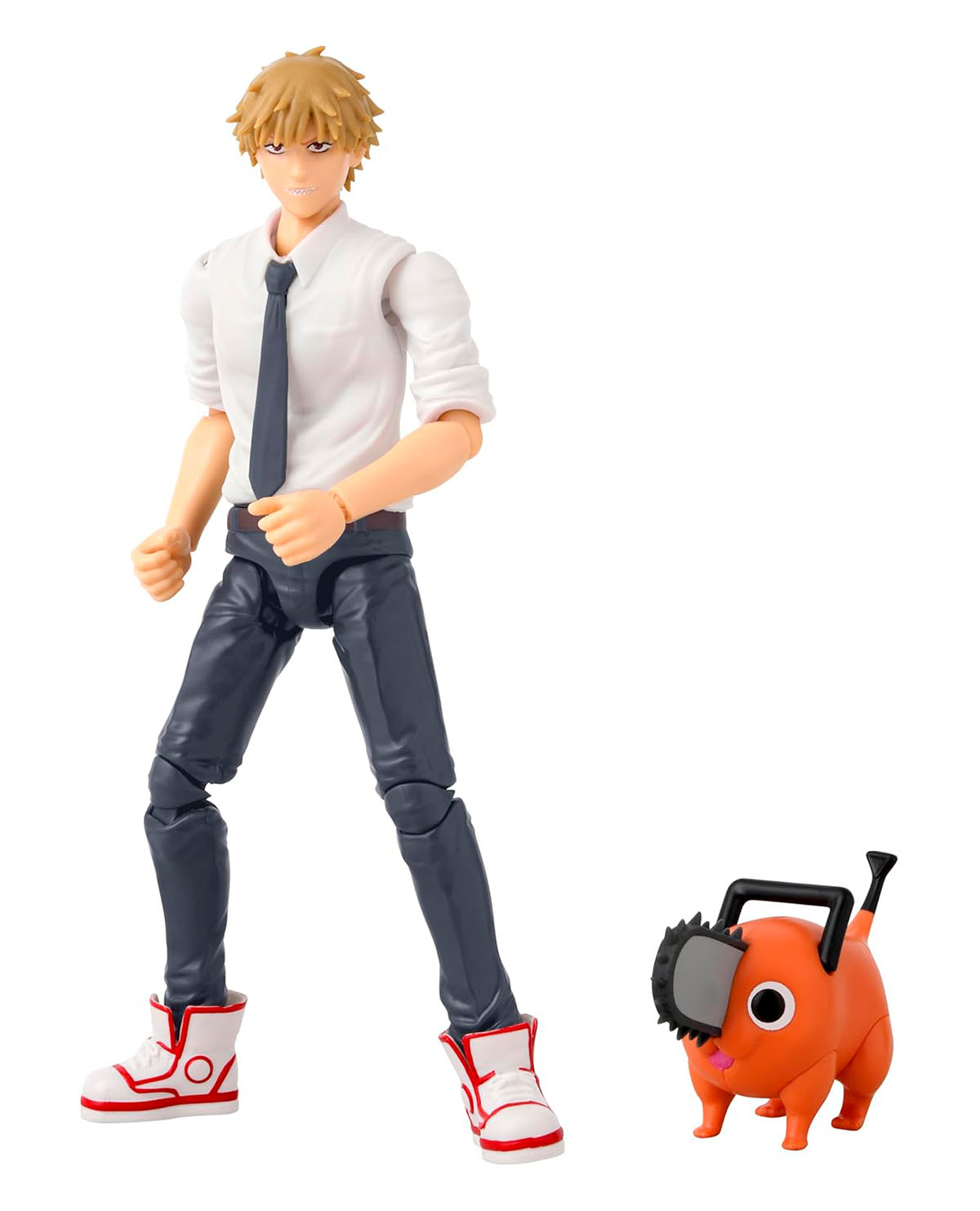 ¡Denji irrumpe en la línea Anime Heroes con toda la energía y acción de Chainsaw Man! Esta figura articulada de 16.5 cm captura a la perfección el estilo del anime y manga, e incluye a su inseparable compañero, Pochita, para completar la experiencia.