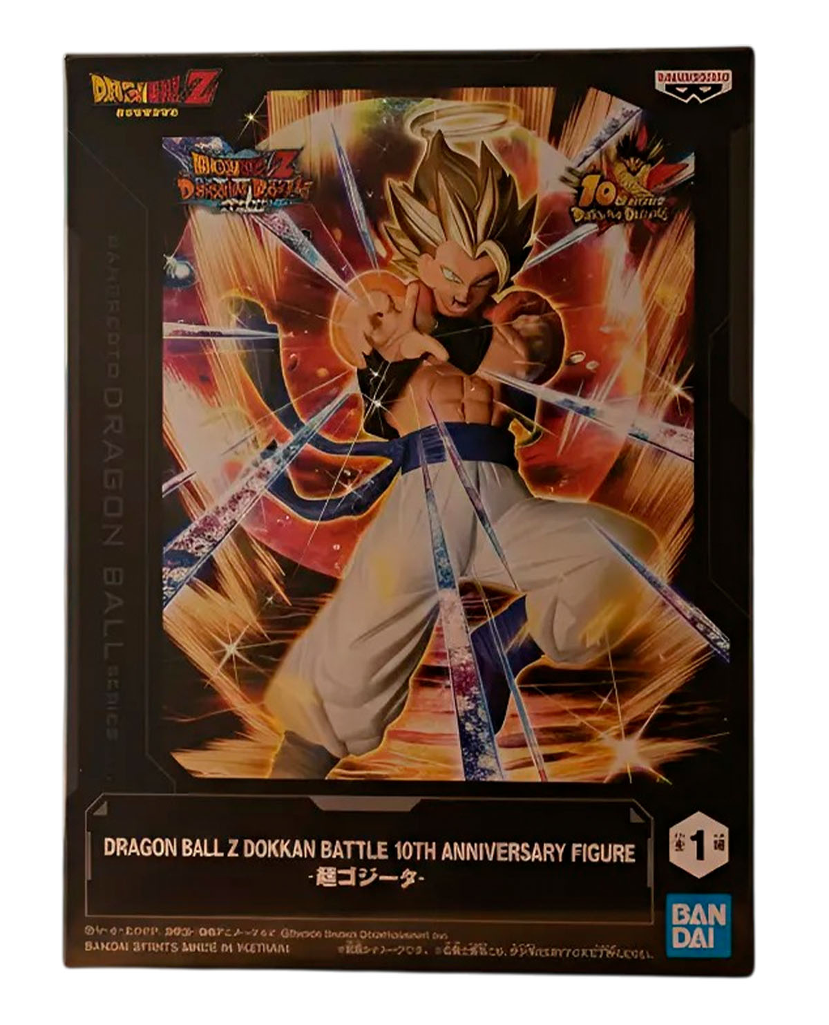 Conmemora el décimo aniversario de Dokkan Battle con esta espectacular figura de Super Gogeta, uno de los guerreros más poderosos del universo Dragon Ball Z. Con una altura de 19 cm, esta pieza captura toda la energía y carisma del personaje en una pose dinámica que transmite acción pura.