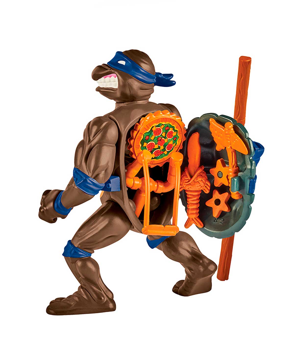 Debido a que solo tiene dos manos, esta figura clásica de Donatello de 4" pulgadas (10 cm) confía en su caparazón para llevar las herramientas de su oficio.