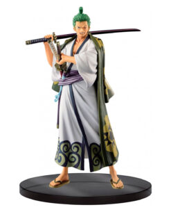 Banpresto presenta la figura de Zoro, de la popular manga y anime «One Piece». Se trata de una figura de PVC que mide 17 cm e incluye una base de exposición.