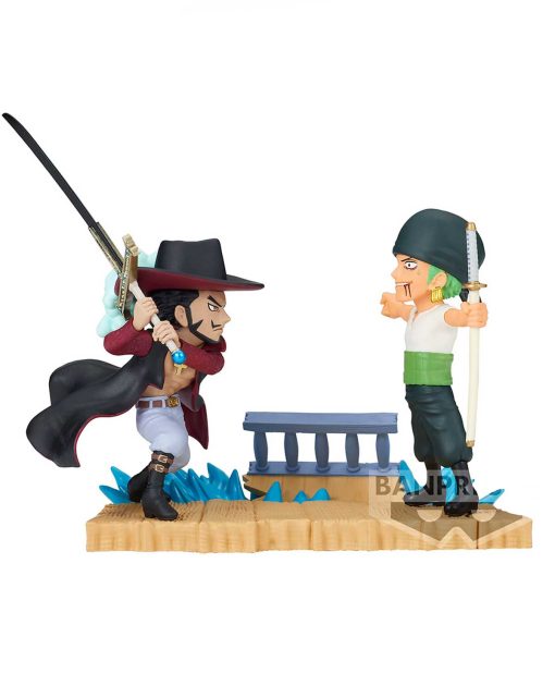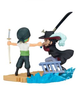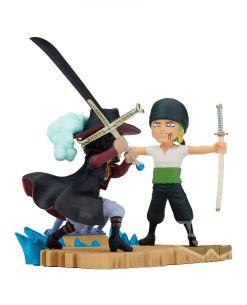 Esta impresionante pieza captura el enfrentamiento entre el temerario espadachín Roronoa Zoro y el legendario Dracule Mihawk, conocido como el "Mejor Espadachín del Mundo". Detallada con precisión y cuidado, la figura presenta a Zoro y Mihawk en una pose dinámica y llena de energía, listos para librar una batalla épica.