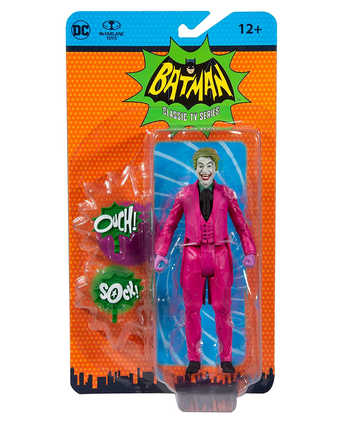 Empaquetado en un blister con reverso de tarjeta con el icónico aspecto de la vieja escuela de la serie Batman de los años 60.