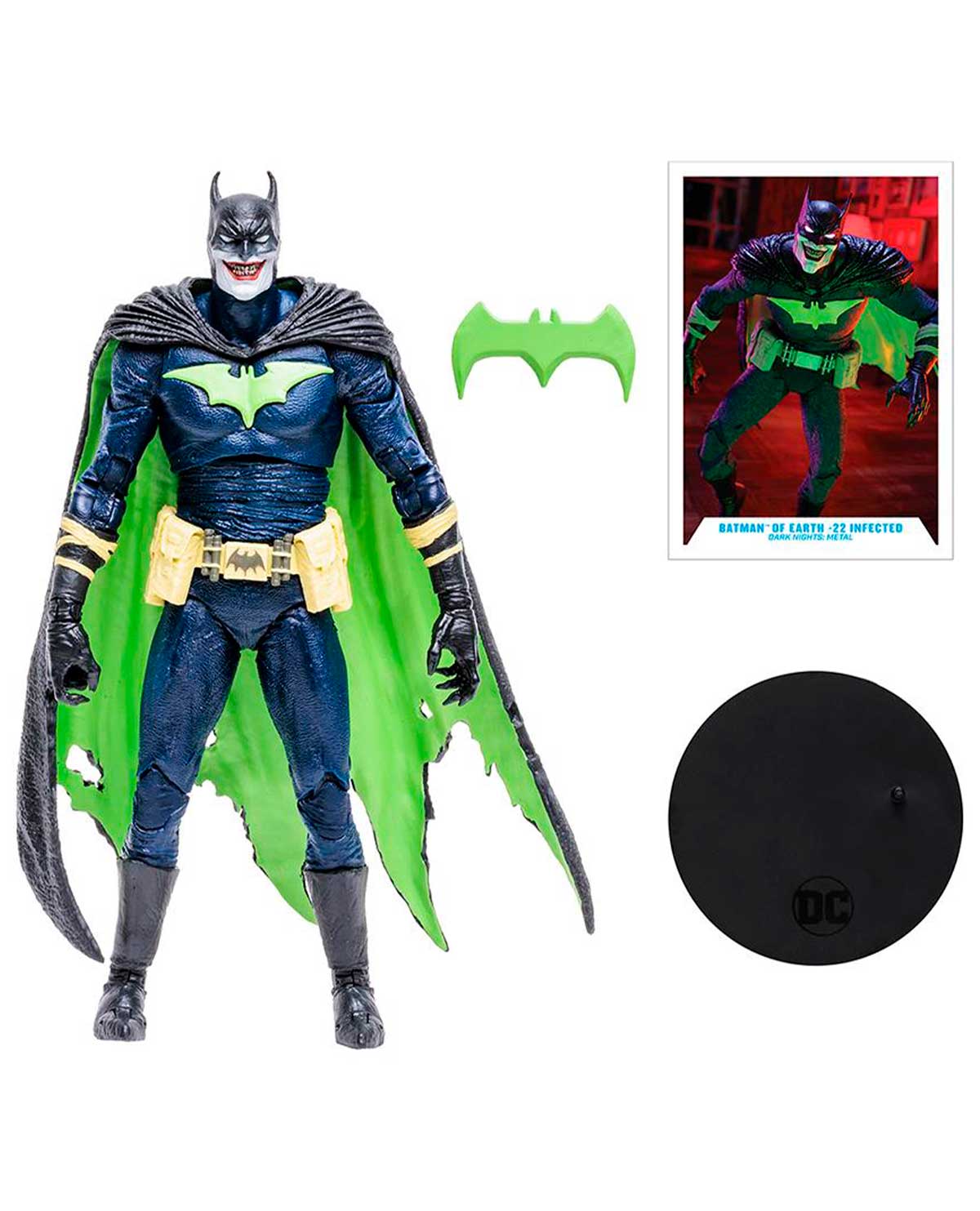 - Batman Who Laughs viene con batarang y una base.
