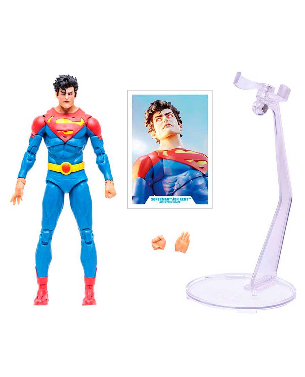 - Jon Kent viene con un par de manos alternativas y una base de soporte de vuelo.