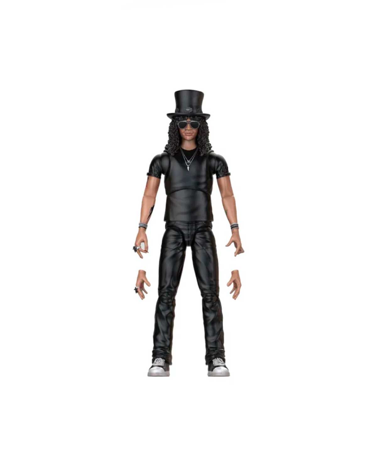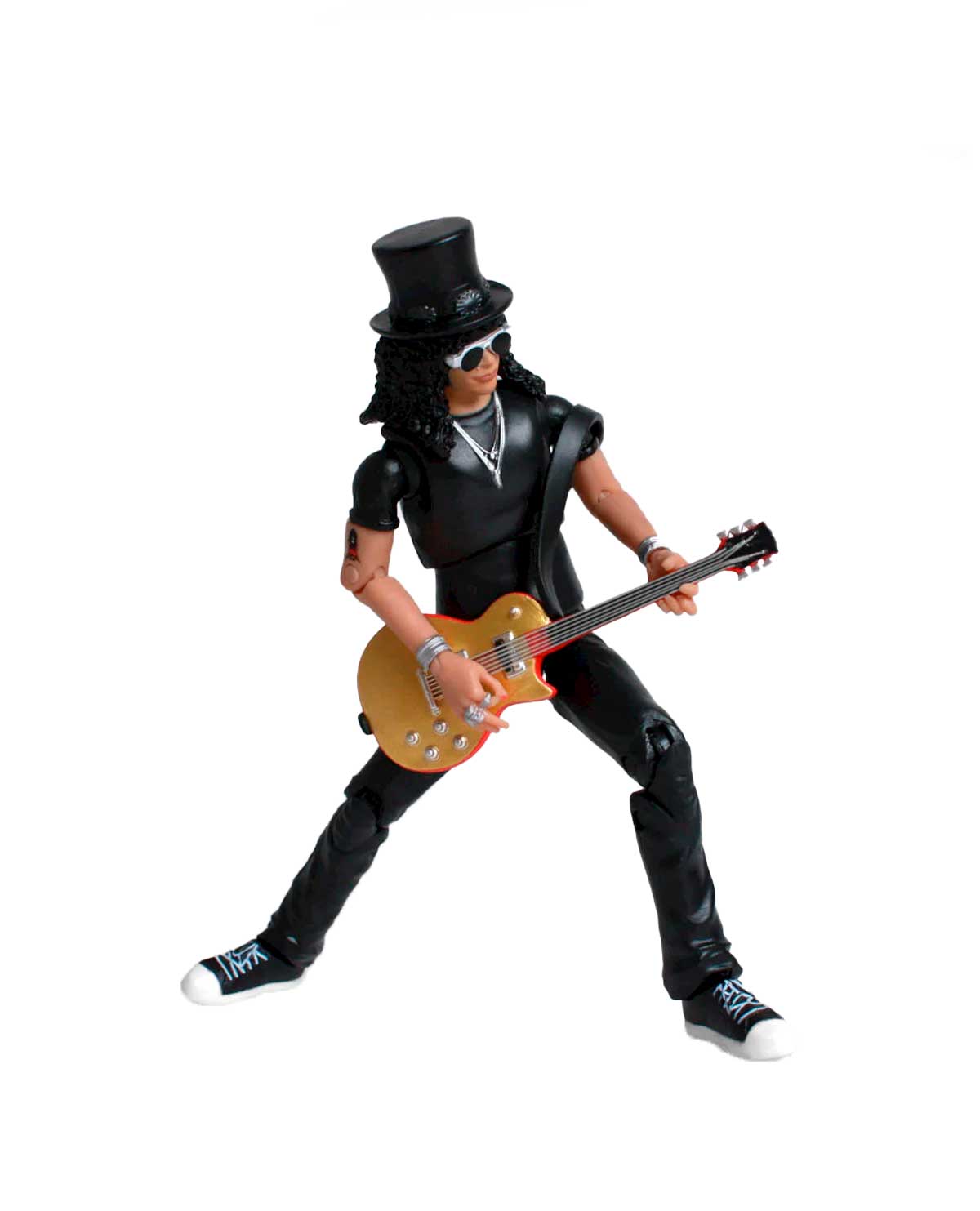 - Tiene accesorios característicos de Slash como su guitarra amarilla.