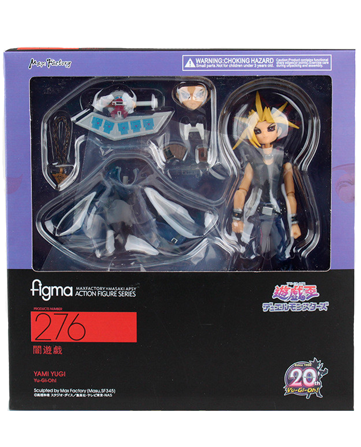 FIGMA VINYL FIGURE YU GI OH YAMI YUGI viene con accesorios en una caja con ventana.