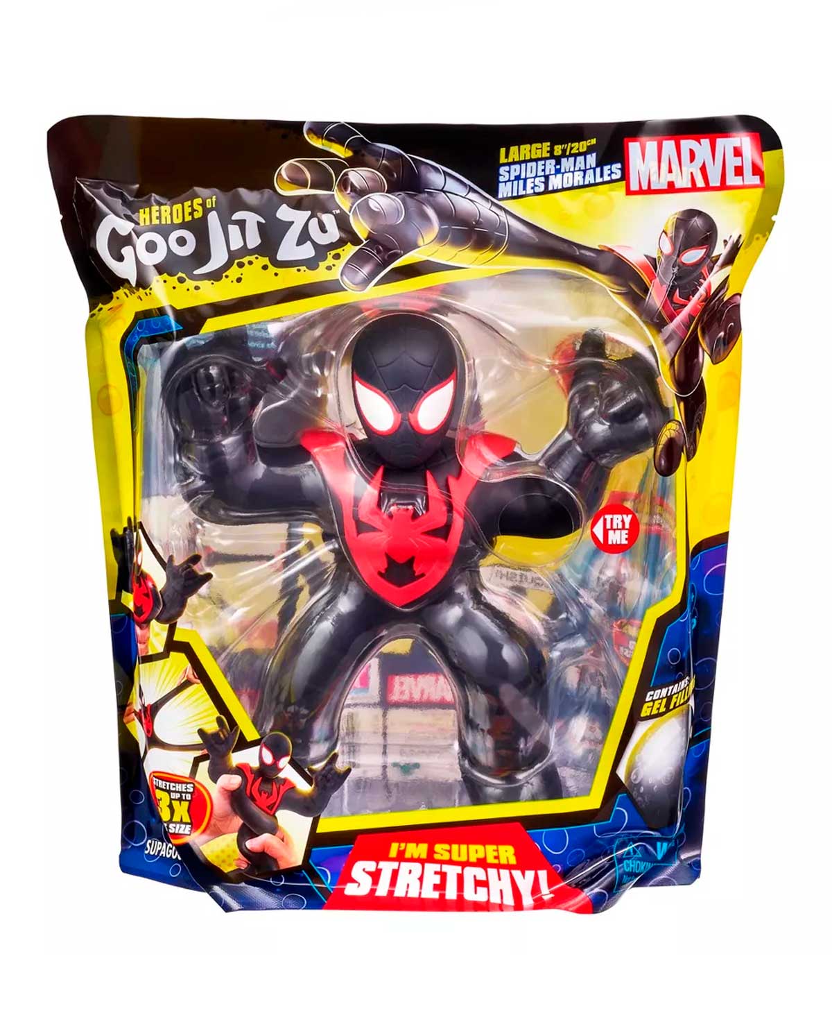 Al igual que otros personajes de Marvel Heroes de Goo Jit Zu, tiene un cuerpo relleno de gel único, pero más grande que nunca! ¡El cuerpo elástico de Miles Morales puede estirarse hasta 3 veces su tamaño y luego volver a su forma original! ¡Te sorprenderá lo elástico que puede ser su enorme cuerpo!