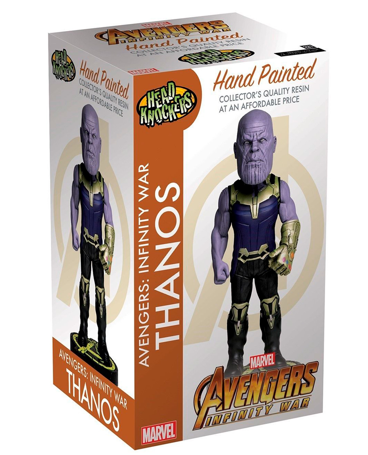 De la exitosa película Avengers: Infinity War de Marvel Studios, estos Knockers de cabeza de Thanos miden 13 cm de altura con cabeza bobbling. Se moldean en resina y luego se pintan a mano para obtener detalles fantásticos, hasta la base temática. Viene en un empaque de acabado mate coleccionable.