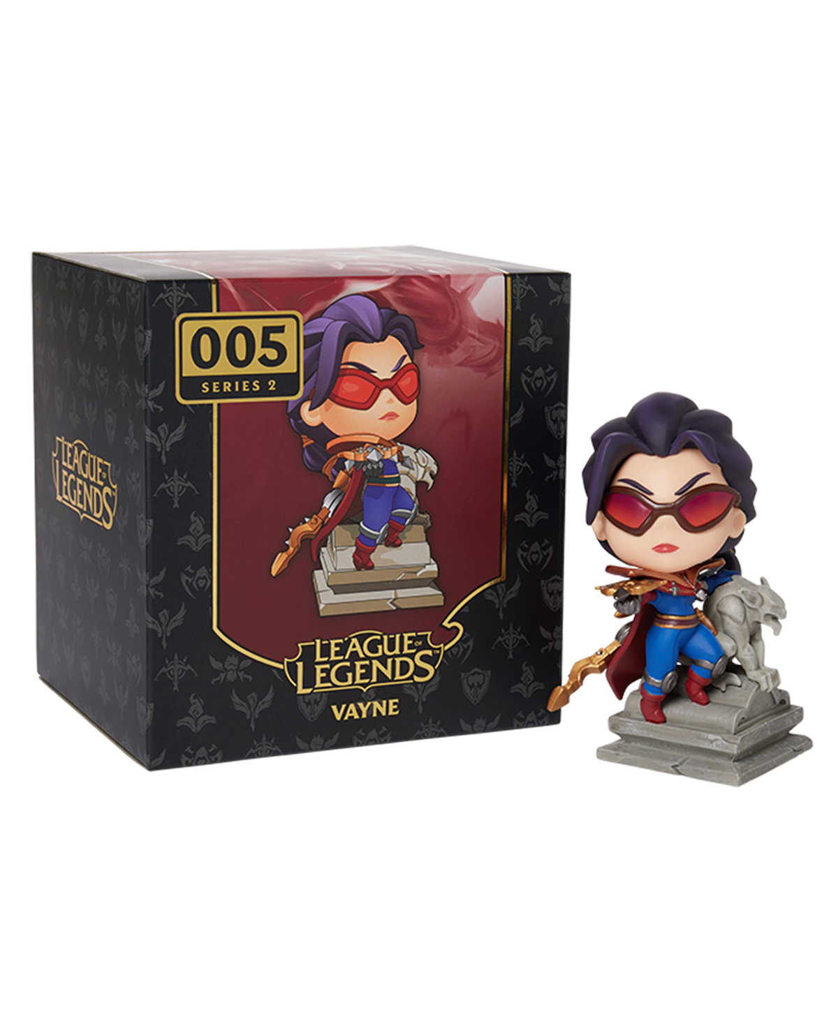 Vayne caza sin piedad a los malhechores, tal vez solo la podrás ver en la noche buscando una nueva presa para poderlos herir con proyectiles de plata pero la podrías incluir a tu colección con esta magnifica figura.