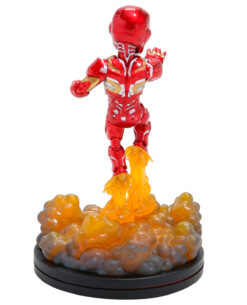 El humo de escape de Jet de Iron Man se ilumina con un brillo dorado ardiente en esta colección de Q-Fig FX. La pintura metálica especial le da a su armadura un brillo brillante. Esta versión de Iron Man aparece en la película de Marvel Captain America: Civil War.