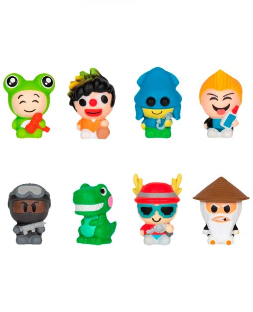 El empaque está completamente sellado, manteniendo oculto su contenido para que sea una sorpresa descubrir qué personaje obtienes. Cada paquete contiene uno de los ocho squishies de 6 cm, representando a los personajes más destacados de los mejores juegos de Roblox: Sparkplug de Brookhaven, Nikilis de Murder Mystery 2, SWAT Pass Gamer de Jailbreak, Froggy de Arsenal Reloaded, Zeg de Build A Boat For Treasure, Playground T -Rex de Livetopia, Ethan de Hide and Seek Extreme y Sensei de Ninja Legends.