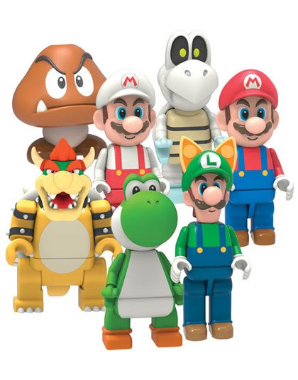 Construye a tus personajes favoritos de la serie Super Mario Bros. Cada set contiene 1 figura para armar, Mario, Fire Mario, Bowser, Dry Bones, Yoshi, Goomba y Luigi. ¿cuál de todos es tu favorito? Ven a Gameplanet por ellos y arma tu colección.