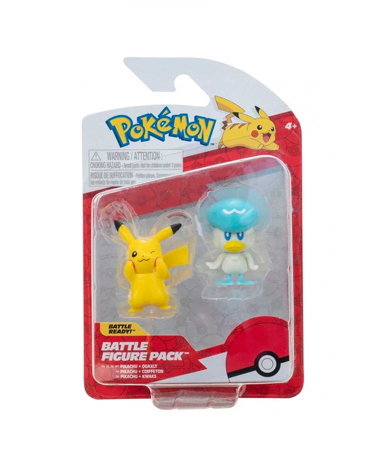 El paquete incluye a Quaxly y Pikachu. Todos tienen detalles auténticos y parecen sacados directamente de la serie animada Pokémon.