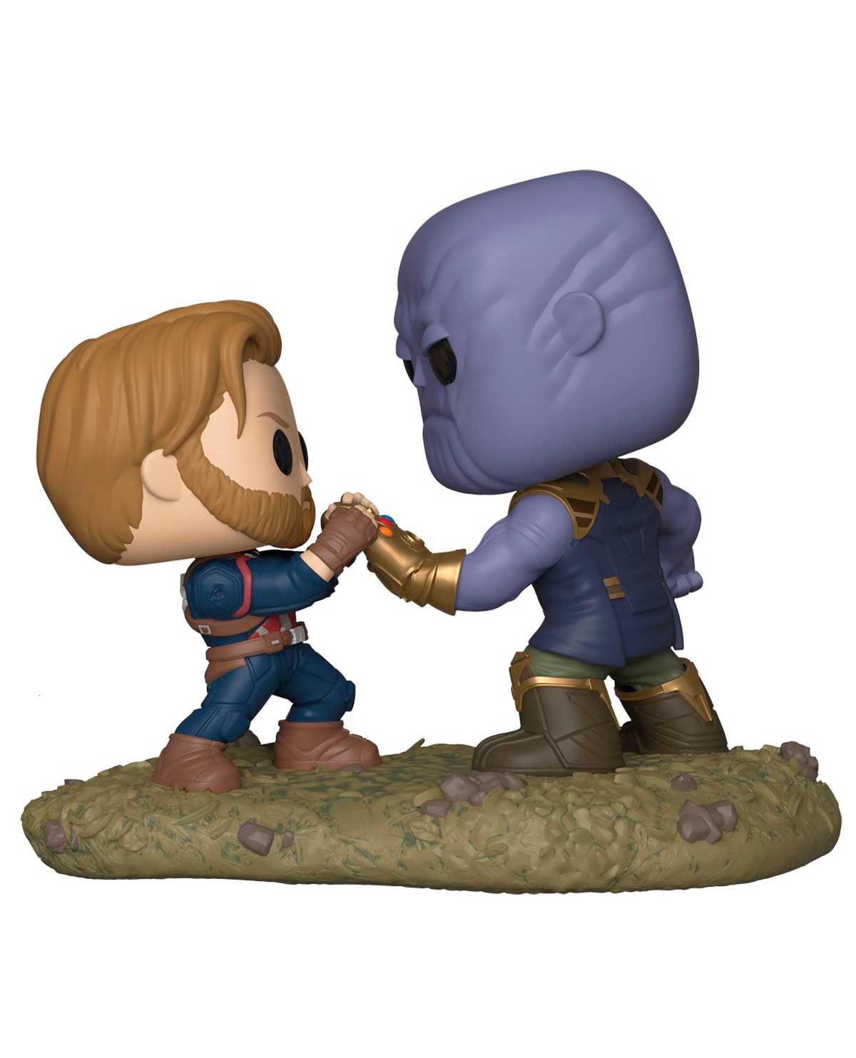 Esta figura recrea una de las escenas más épicas de la película, en la que el Cap detiene el inmenso poder del Titán loco.
