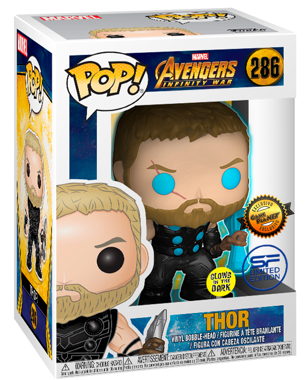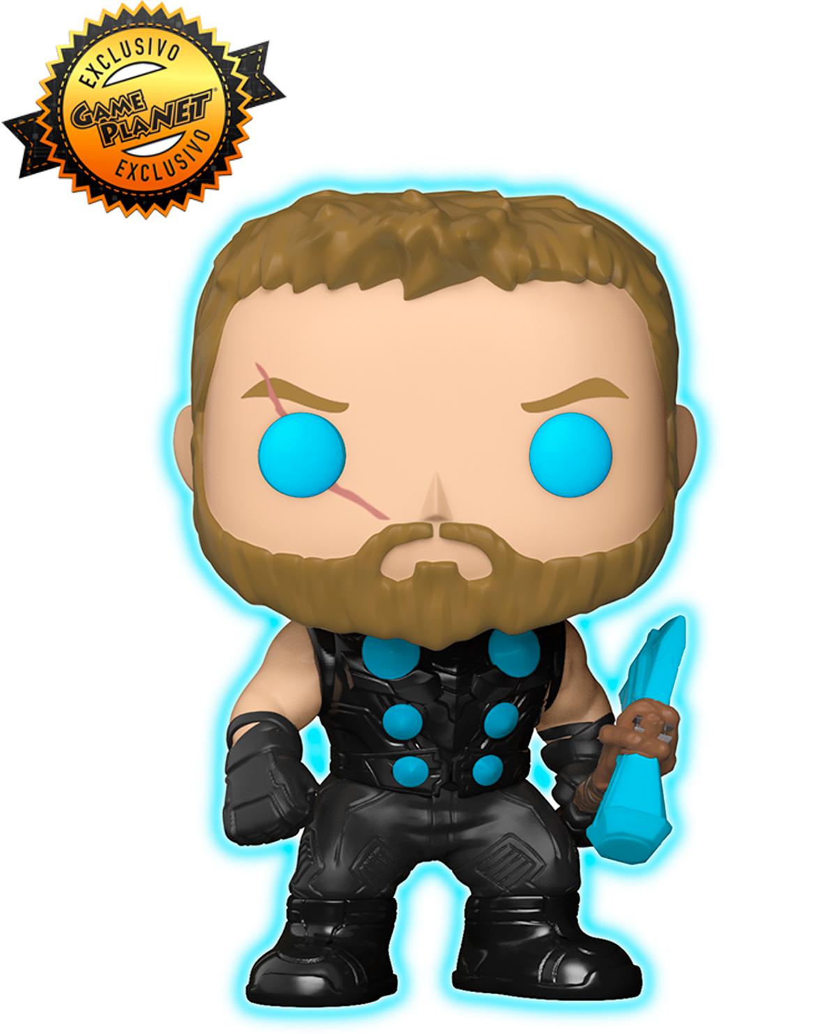 Este Pop! presenta al Dios nórdico del trueno, Thor esta preparando a Mjolnir para usarlo en el combate contra Thanos.