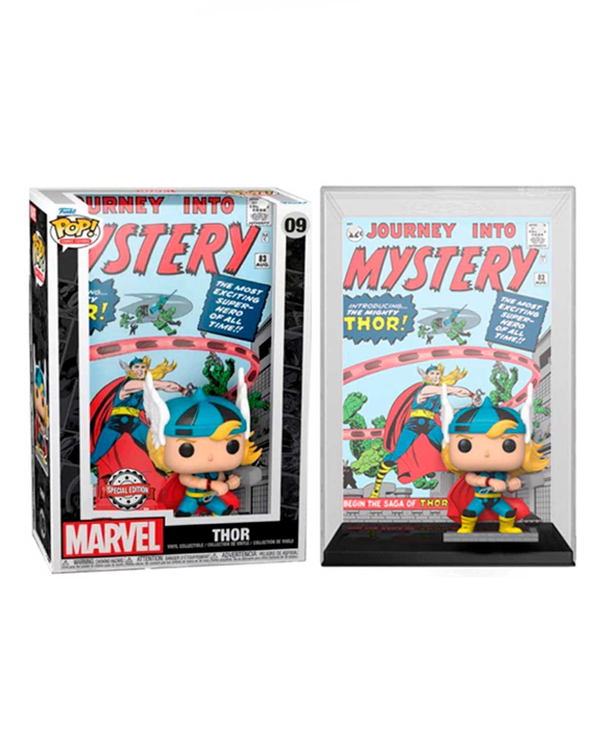 ¡El poderoso Thor empuña Mjölnir! ¡Este coleccionable especial presenta la portada del número 83 del 1 de agosto de 1952 de Marvel’s Journey into Mystery and a Pop! del poderoso Thor, ¡todo empaquetado en una funda protectora que se puede colgar en la pared!
