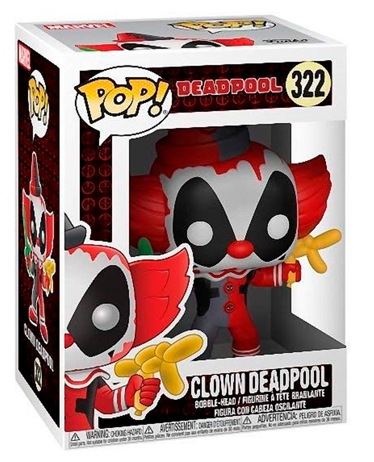 En esta ocasión Funko nos ha regalado su versión Pop del héroe más extrovertido de Marvel, el genial Deadpool, con su traje y máscara rojos característicos pero un momento, ese no es su traje, ahora si nuestro anti héroe decidió jugar a sacar unas macabras risas vestido de payaso y se esforzó tanto que hasta figuras de globos trae.