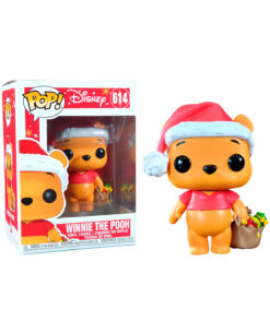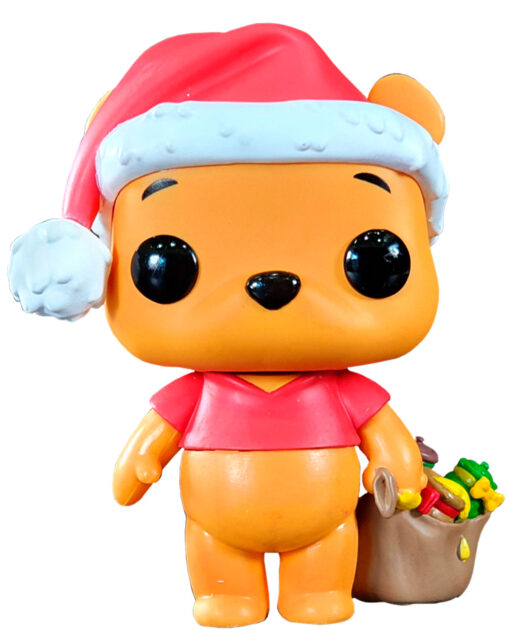 Este Pop presenta a Winnie Pooh vestido como Santa Claus y sosteniendo una canasta de juguetes para los niños.