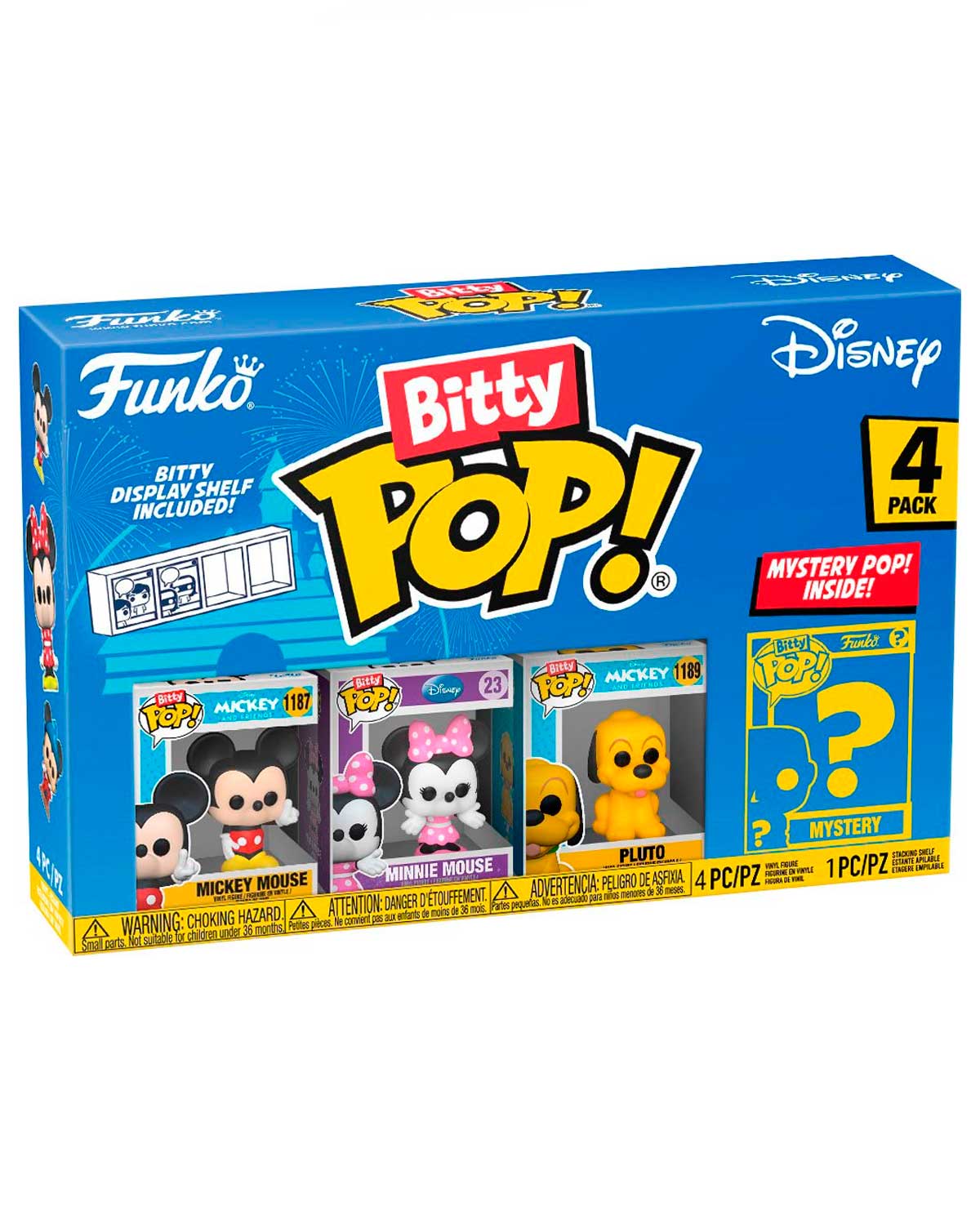 ¡Figuras de tus personajes de dibujos animados más queridos! ¡Este paquete de 4 incluye a Mickey Mouse, Minnie Mouse (vestido rosa), Pluto y uno misterioso!
